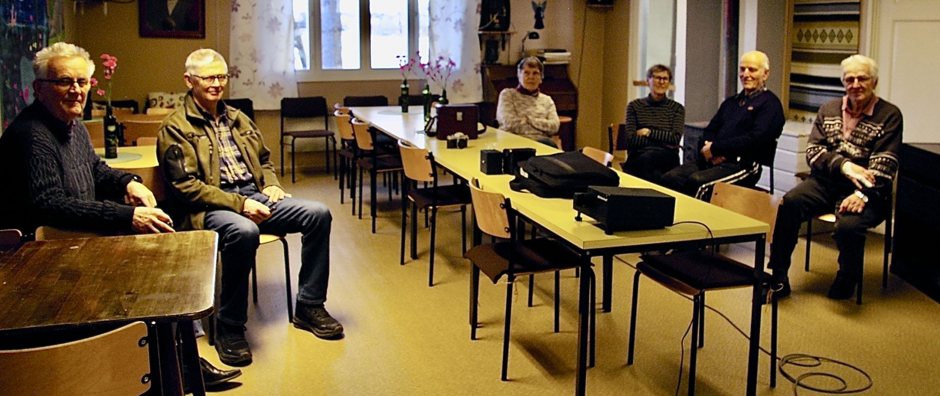 Då tittade vi på 45 år gamla diabilder med hjälp av en lika gammal projektor. Birgitta visade bilder från Nagu, bland annat från en begravningsresa till Sälgskär ca 20 km från Kirjais byhamn och till Nötö kapellkyrka. Bilderna har bleknat lite. De har ändå lagrats i rumstemperatur, från 2022 i 15 grader, och hela tiden i kompakt mörker i för ändamålet avsedda lådor.