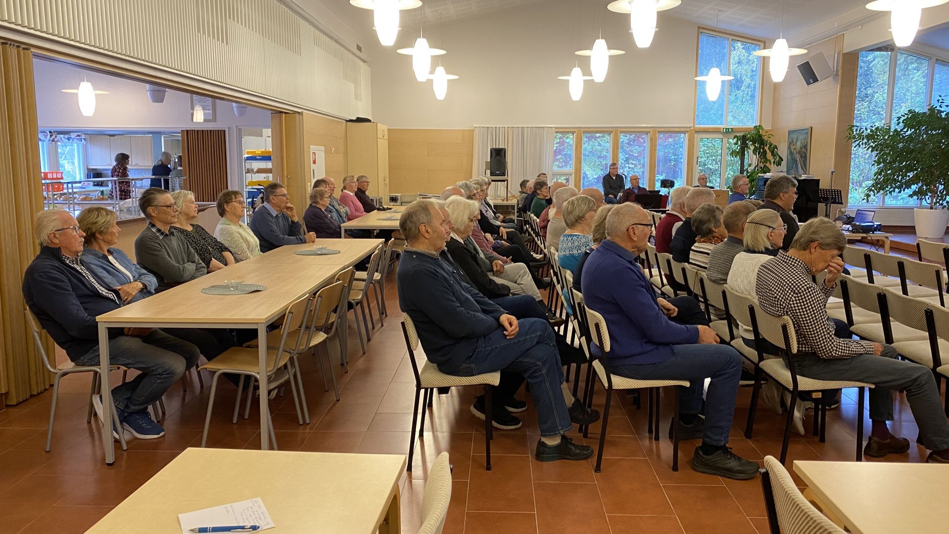 Skåtar är ordförande för äldrerådet i Nykarleby stad. Han berörde utmaningarna med äldrevården i allmänhet, och föreslog en lättare form för gemenskapsboende.
