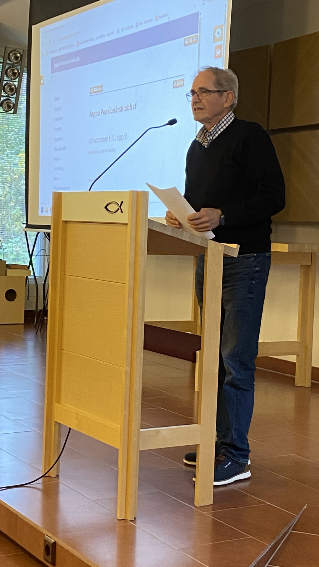 Efter pausen sjöngs den andliga sången O Jesus, du som fyller allt i alla, och Jeppo jaktförenings mångåriga ordförande Jan-Erik Nybyggar fick ta vid.