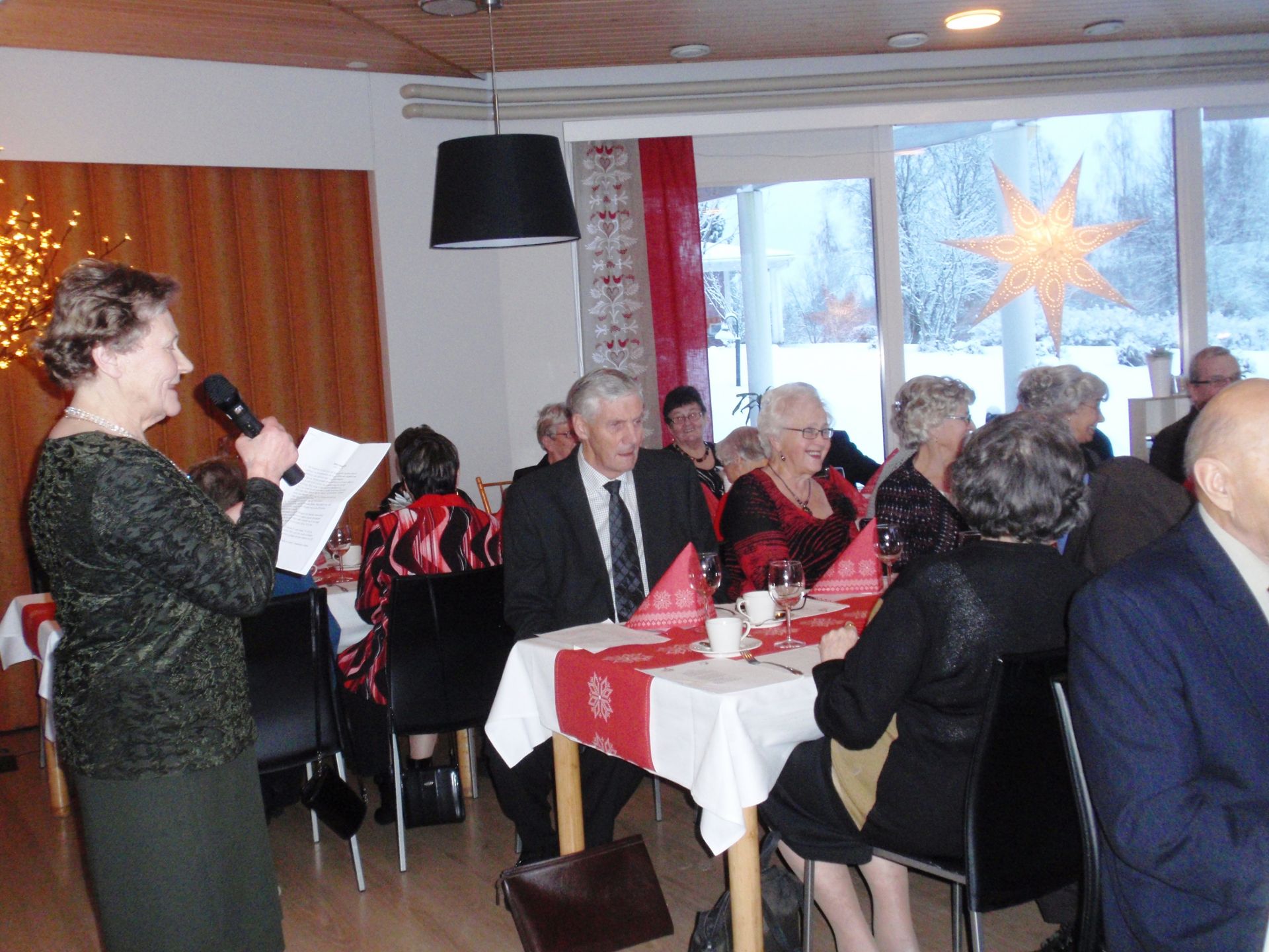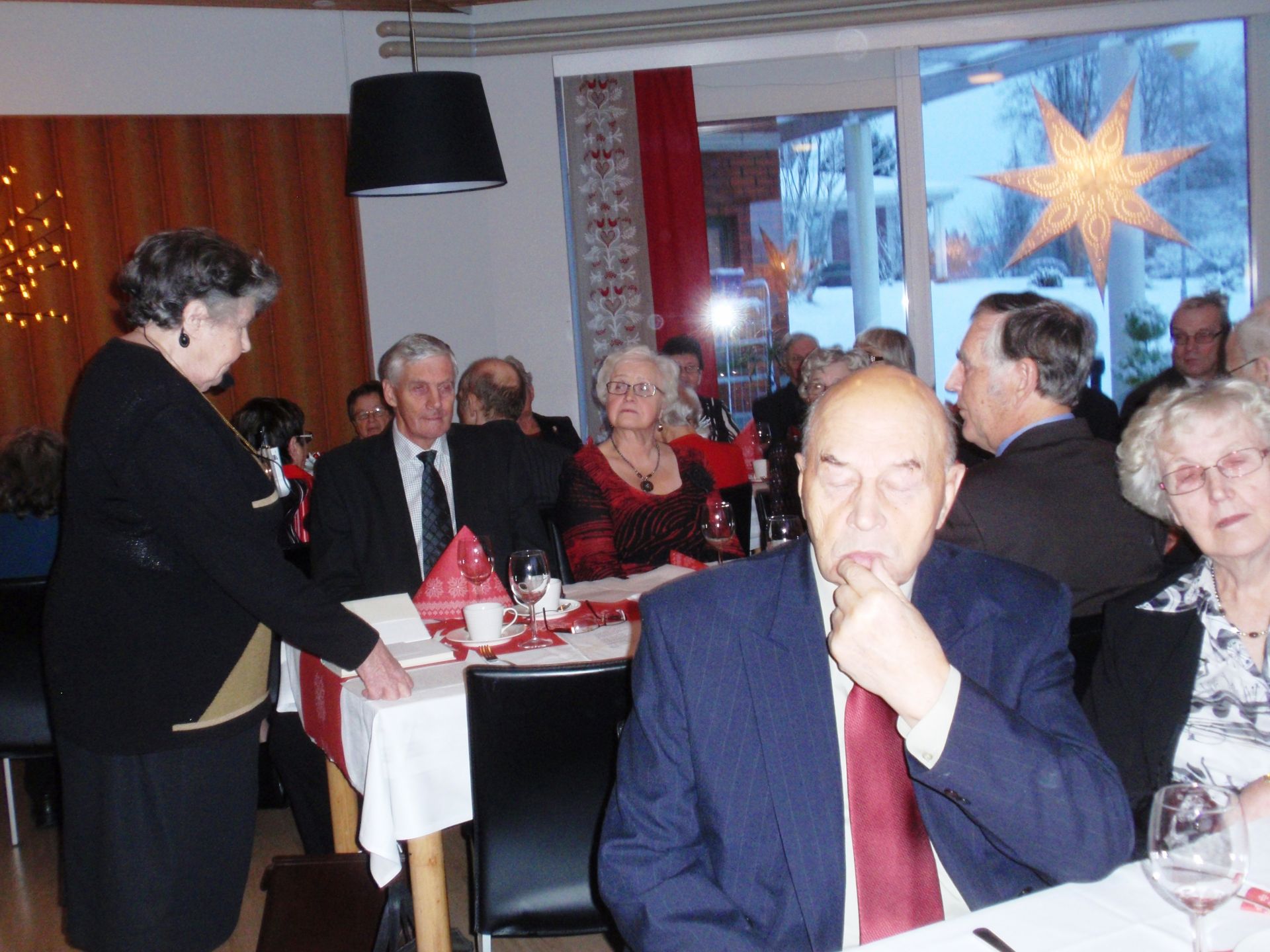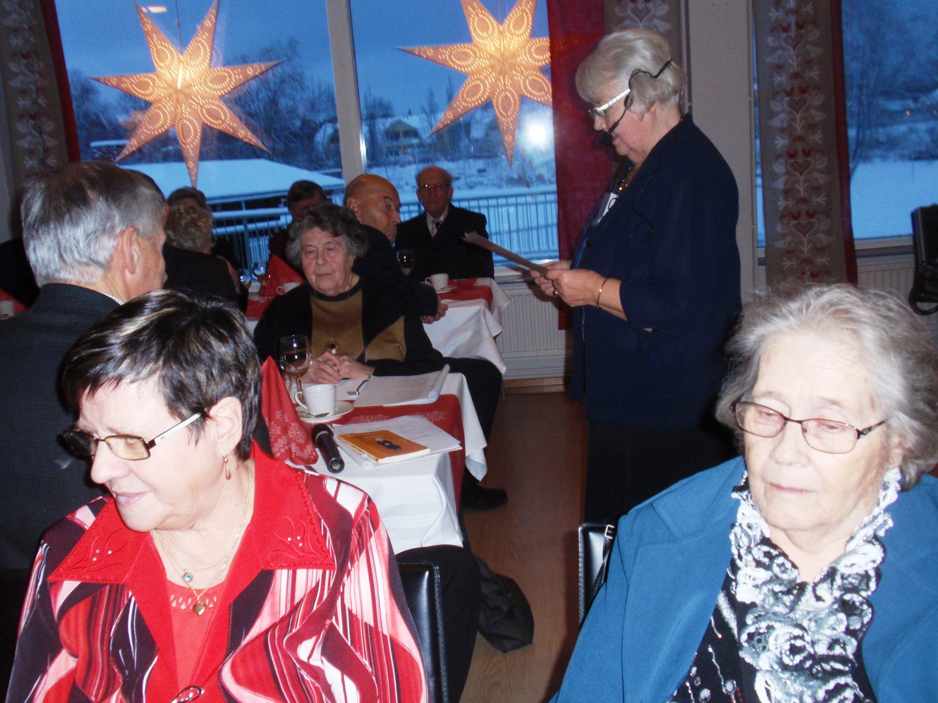 Ordföranden hälsade välkommen varefter det som allsång sjöngs Julvisa. Klubben uppmärksammade medlemmar som fyllt 90 och 80 år under året.