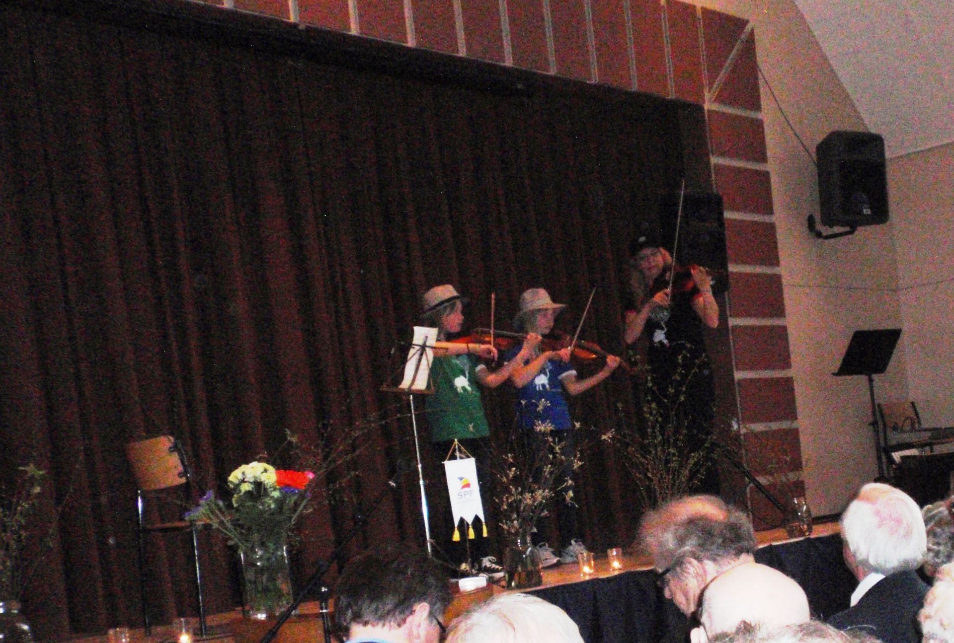 Ann-Christine Julin-Häggman med sin grupp ungdomar som sjöng och spelade på fiol.