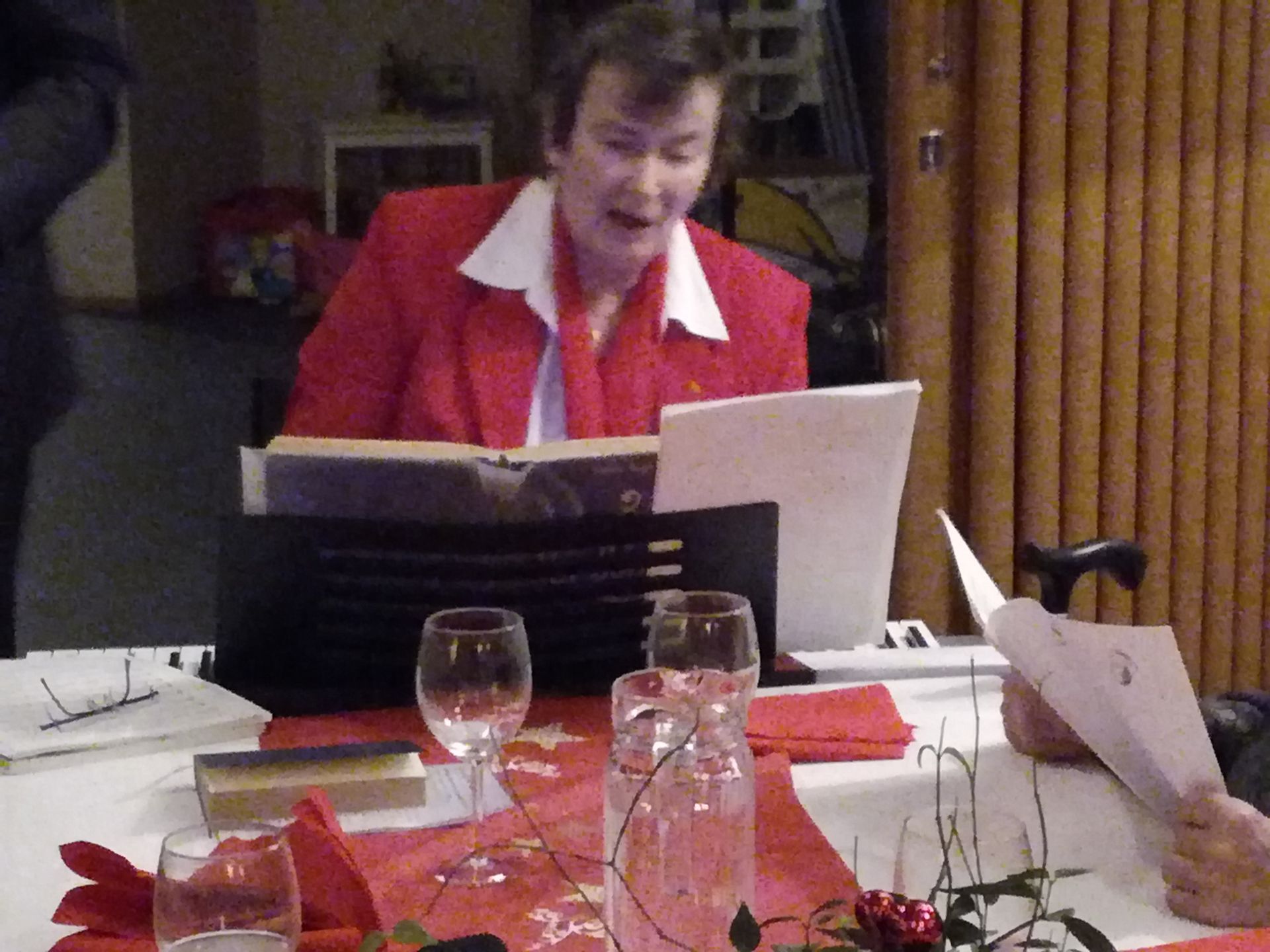 Ordförande Ole Nordström hälsade de närvarande välkomna samt läste ett stycke ur boken När jag ser din himmel varefter festen drog igång med violinflickorna Filippa Forsgård och Selma Nordström som spelade två låtar till ackompanjemang av Caj Nordström. Sedan var det tal av regionordföranden Henrik Svarfvar som gav info om aktuella saker.