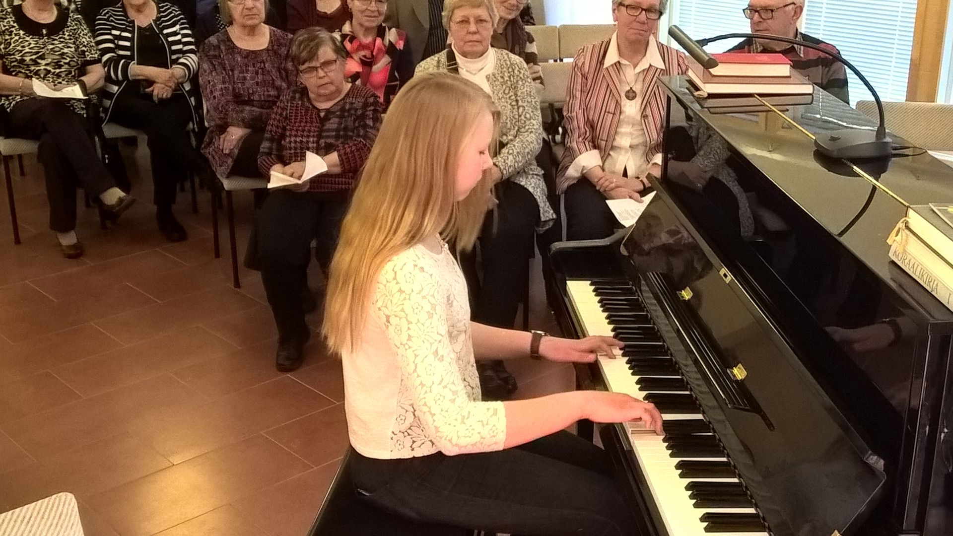 Efter pausen spelade Selma Nordström på piano och Valfrid Back läste ur boken Blad ur livet om orgeltramparen Isak Myntti, i folkmun känd som "Gigo".