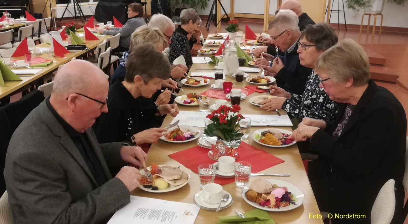 Årets julfest hölls den 12 december i Församlingshemmet med 74 medlemmar närvarande vilket torde vara deltagarrekord. För en förträfflig traktering svarade Cafe Funkis och för musiken Manne Sundqvist och Tage Lillrank.