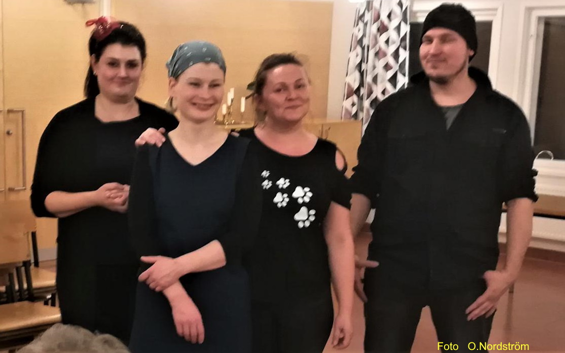 Efter maten sjöng vi Sylvias julvisa och Nu har vi ljus här i vårt hus, varefter musikanterna varierade mellan att sjunga själva och ha allsång med de närvarande. Och så kom Julgubbarna och delade ut paketen.