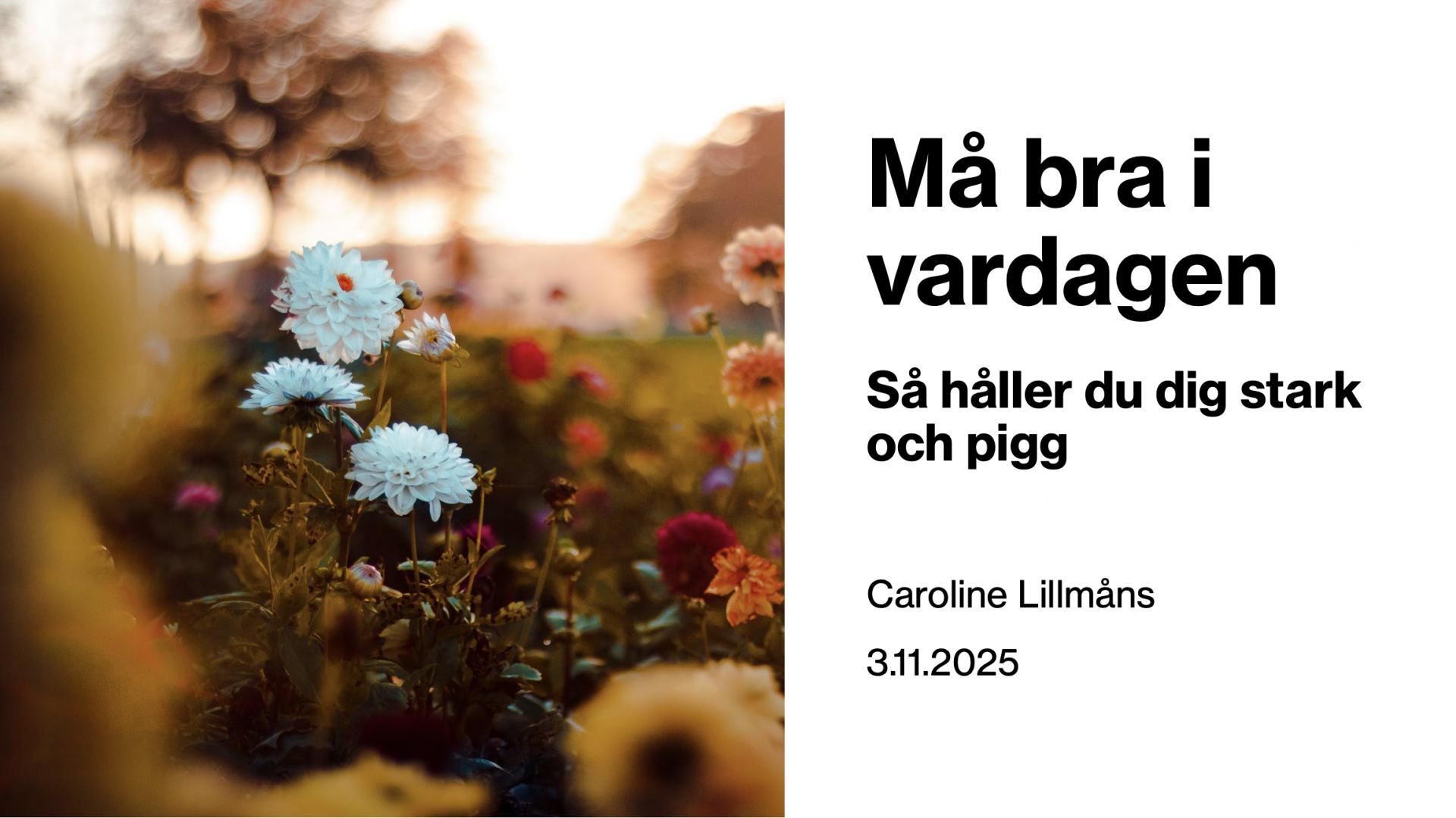 Vår gäst Caroline Lillmåns visade sig vara en mångkunnig och mångutbildad kvinna. Hennes första fråga var "Hur mår du idag?" De närvarande fick fråga varandra, och det svar många gav var "bra". Caroline berättade om att hälsa, relationer och något att göra behövs för att en människa ska känna att hoon mår bra.