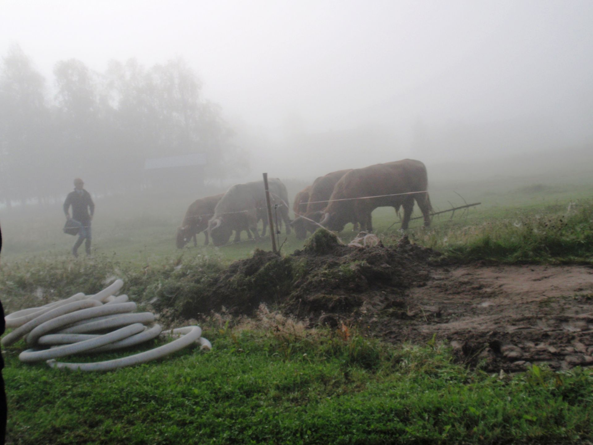 Ägaren Sune Vest gav oss en fin information om gårdens köttproduktion samt bjöd på smakbitar. Efter att vi druckit morgonkaffet fortsatte vi i en lättande dimma vidare till Terjärv.