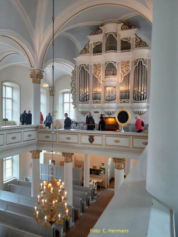 Efter gudstjänsten guidade Lindblom kyrkan för oss. Han var väl påläst och kunde berätta intressanta saker om kyrkan. De modigaste gick också upp till läktarna och beundrade kyrkan därifrån.