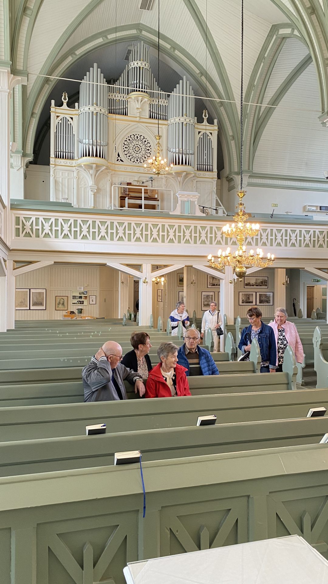 När vi kom in i själva kyrksalen möttes vi av orgelmusik och sång. Kantorerna Martti Laitinen och Hannes Uunila var i tjänst, och likaså en sånggrupp, 7 män stark, som övade. De skulle sedan bidra med kraftigt stöd åt församlingssången. Som svar mellan textläsningarna fick vi höra dagens psaltarpsalm, sjungen enligt sedvanlig psalmton av sånggruppen. Som postludium spelade Hannes Uunila ett stycke av Franz Liszt. Verk av honom hör man inte så ofta spelas på orgel.