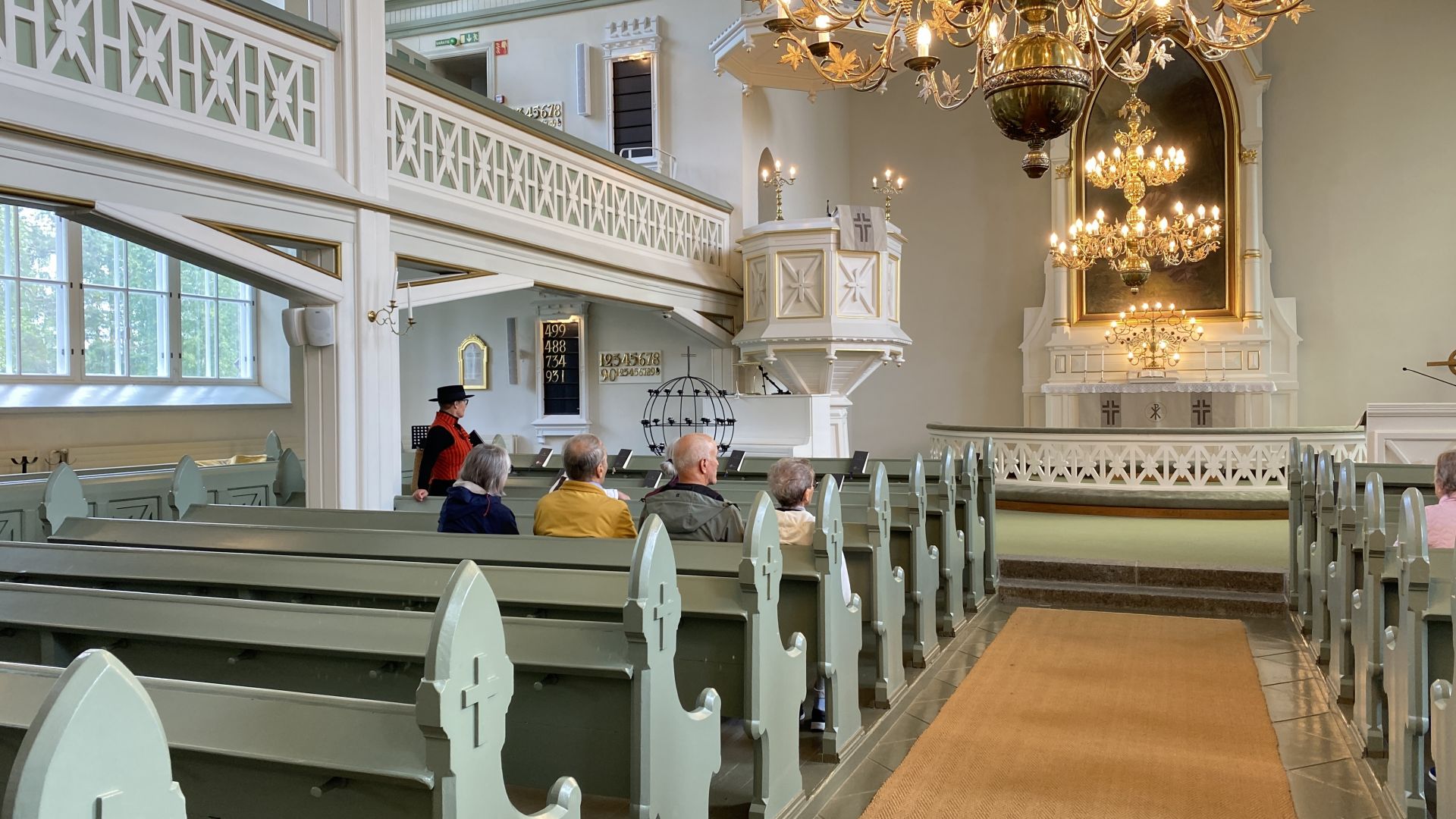 Tjänstgörande präst var kyrkoherde Per Stenberg. Han guidade kyrkan efter gudstjänsten och berättade också kort om Anders Chydenius och hans prästgård, som är byggd 1736 och en av landets äldsta.