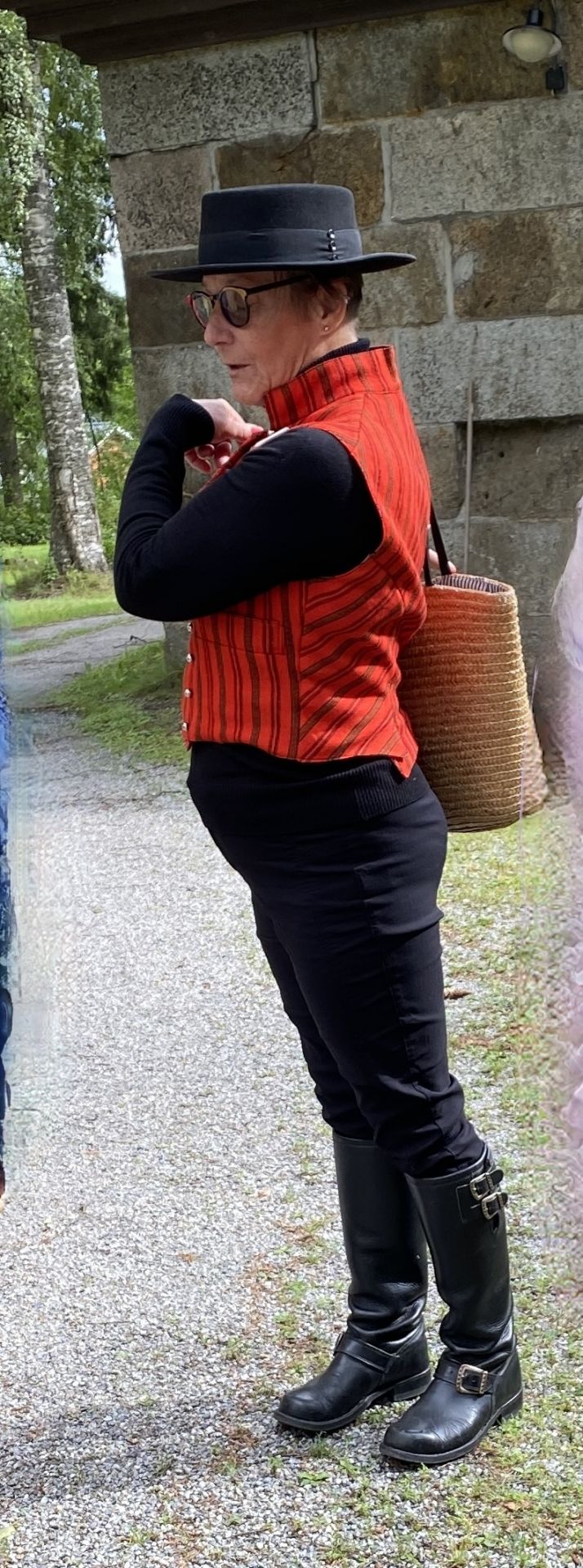 Hilkka Palomäki, som var iklädd Härmä-mansdräktens hatt och väst, var kunnig guide i kyrkan och på kyrkogården.