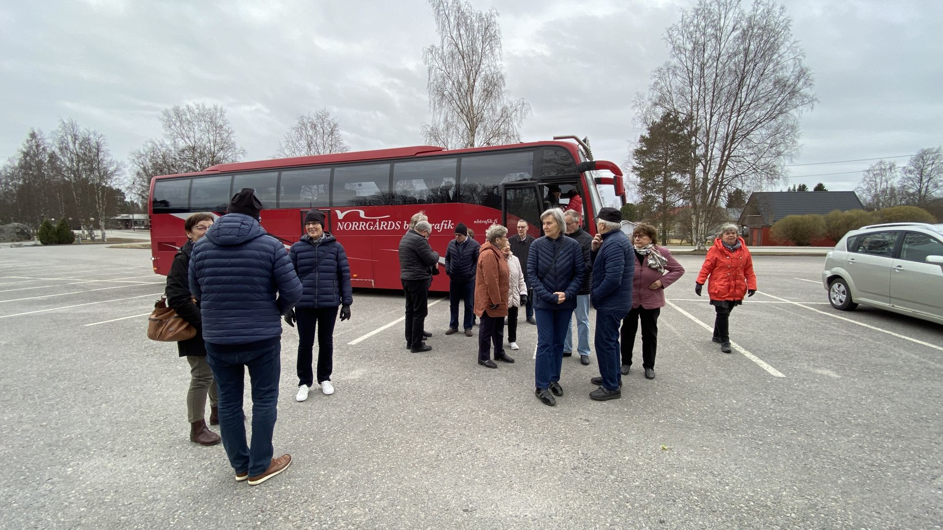 Tidig förmiddag startade 26 personer mot Karleby under en ganska gråmulen men vindstilla dag. De flesta åkte buss med Peter Åbacka som chaufför, ett par åkte egen bil, men alla sammanstrålade i kyrkan och senare på Uffes mat och café i Purmo, där resenärerna fick en sedvanligt god söndagslunch. En del anmälda fick förhinder, men trots det var det bara att åka. Våra värdar var redo.