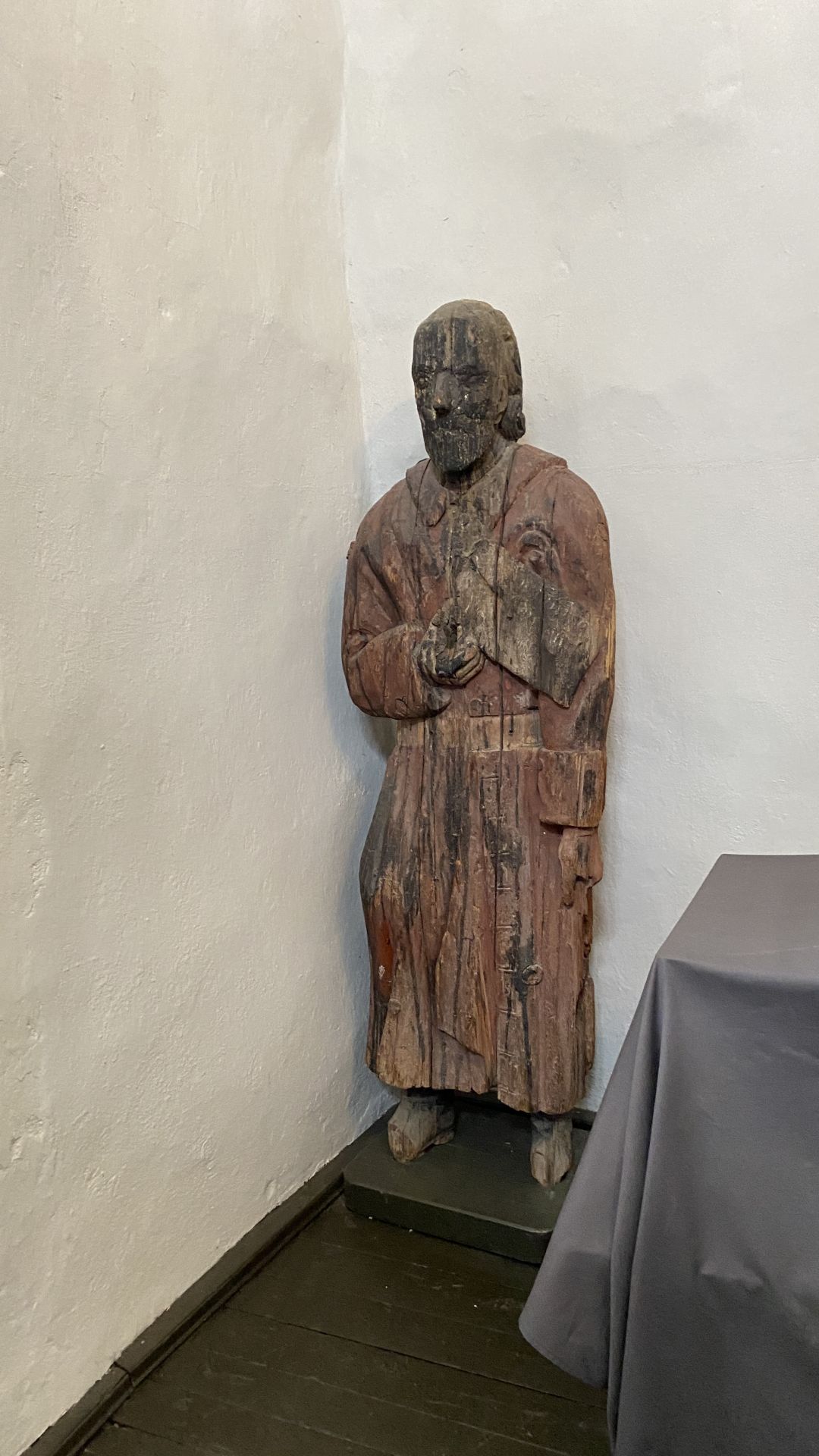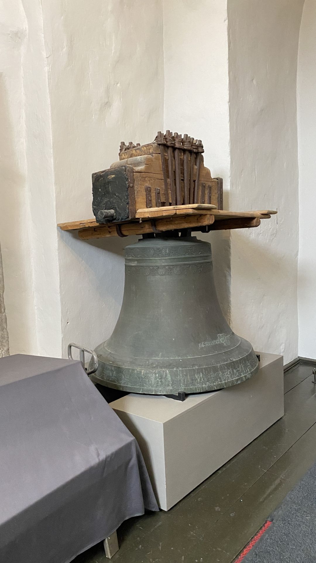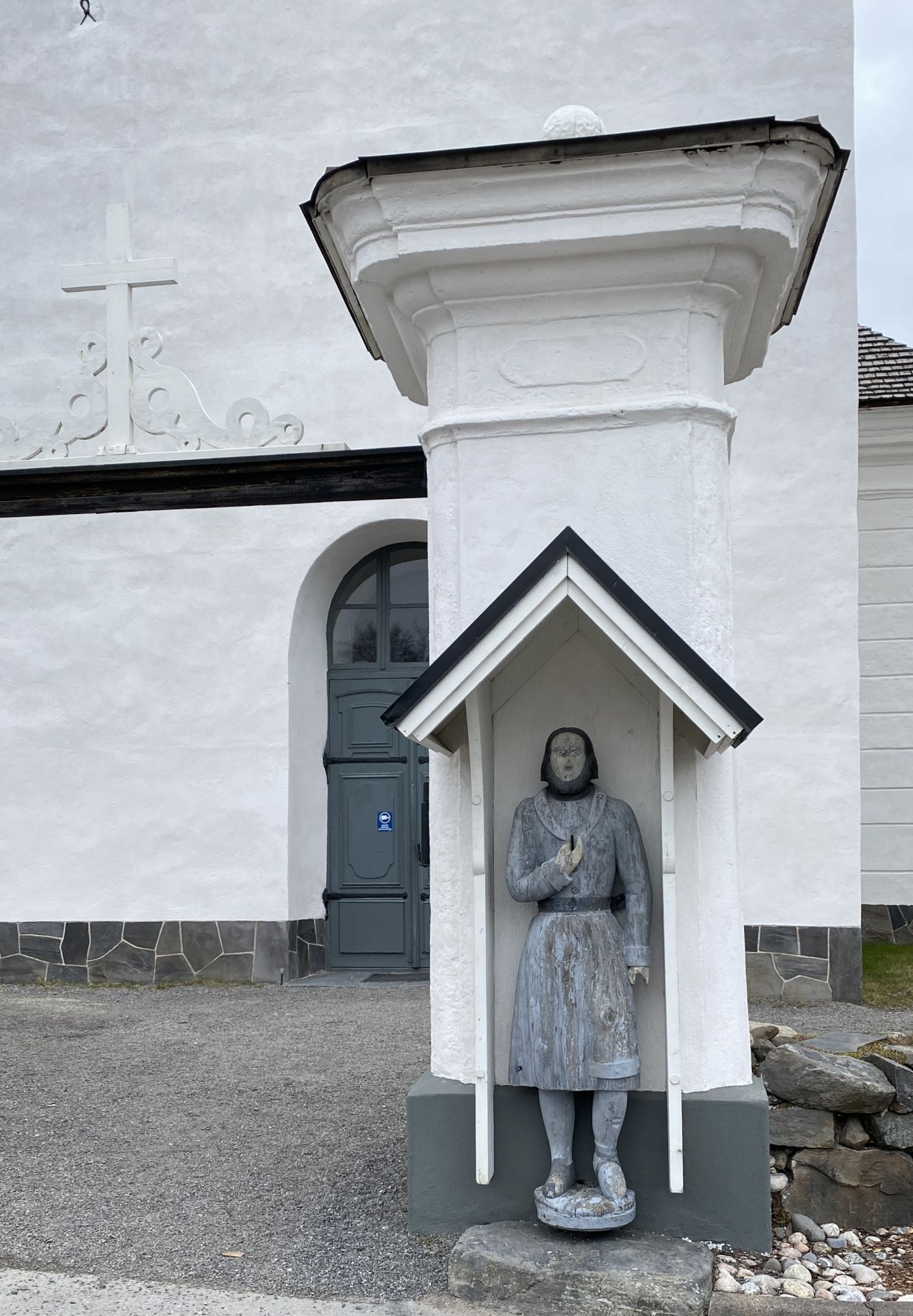 Innan vi kom in i kyrkan passerade vi nya fattiggubben från 1840-talet som stod uppfordrande vid porten. Inne i vapenhuset mötte vi fattiggubben från 1784, som var berest och har representerat Finland vid utställningar i USA, Japan och Sverige. I vapenhuset kunde vi också förundra oss över en stor - eller kanske är det liten (?) - kyrkklocka.