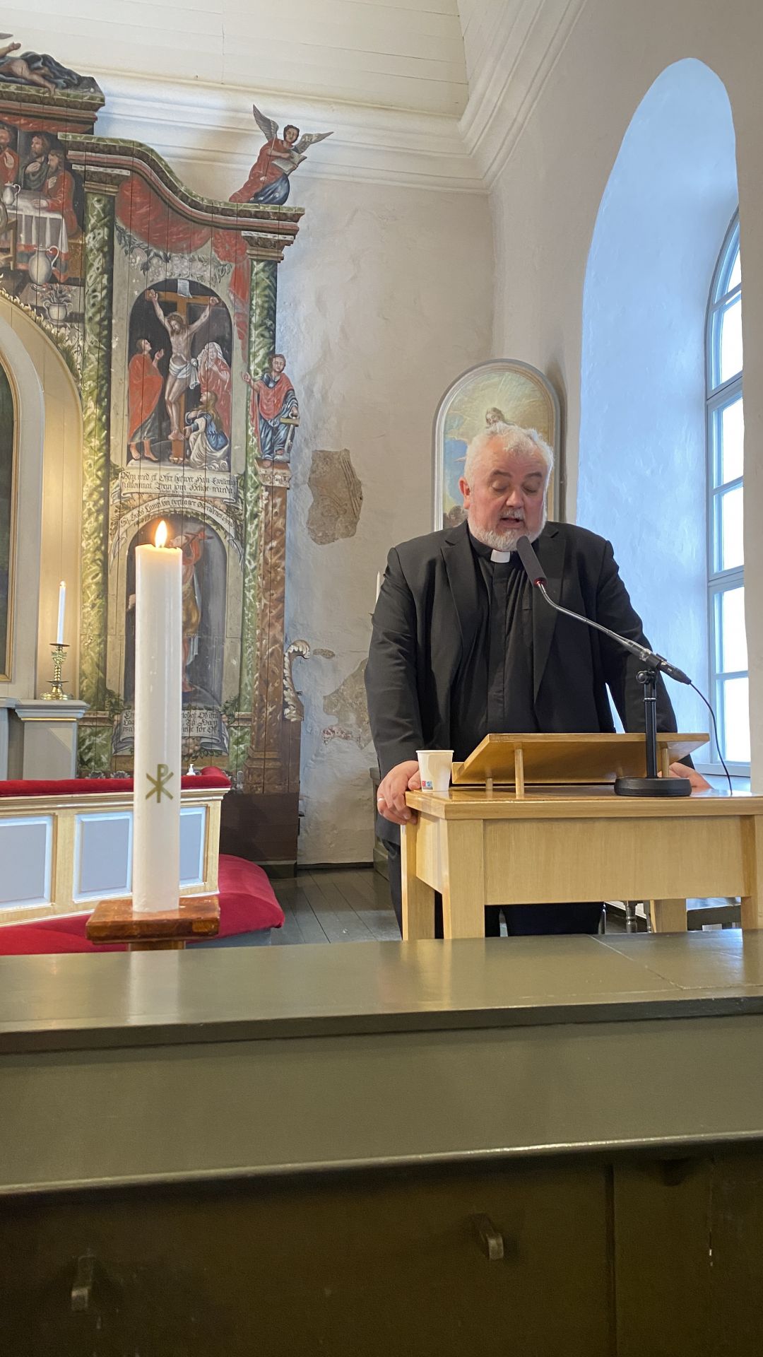Tjänstgörande präst var kyrkoherde Per Stenberg. Han guidade kyrkan efter gudstjänsten och berättade också kort om Anders Chydenius och hans prästgård, som är byggd 1736 och en av landets äldsta.